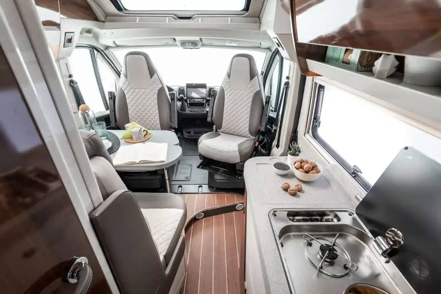 - Drehbarer Fahrer- u. Beifahrersitz: S