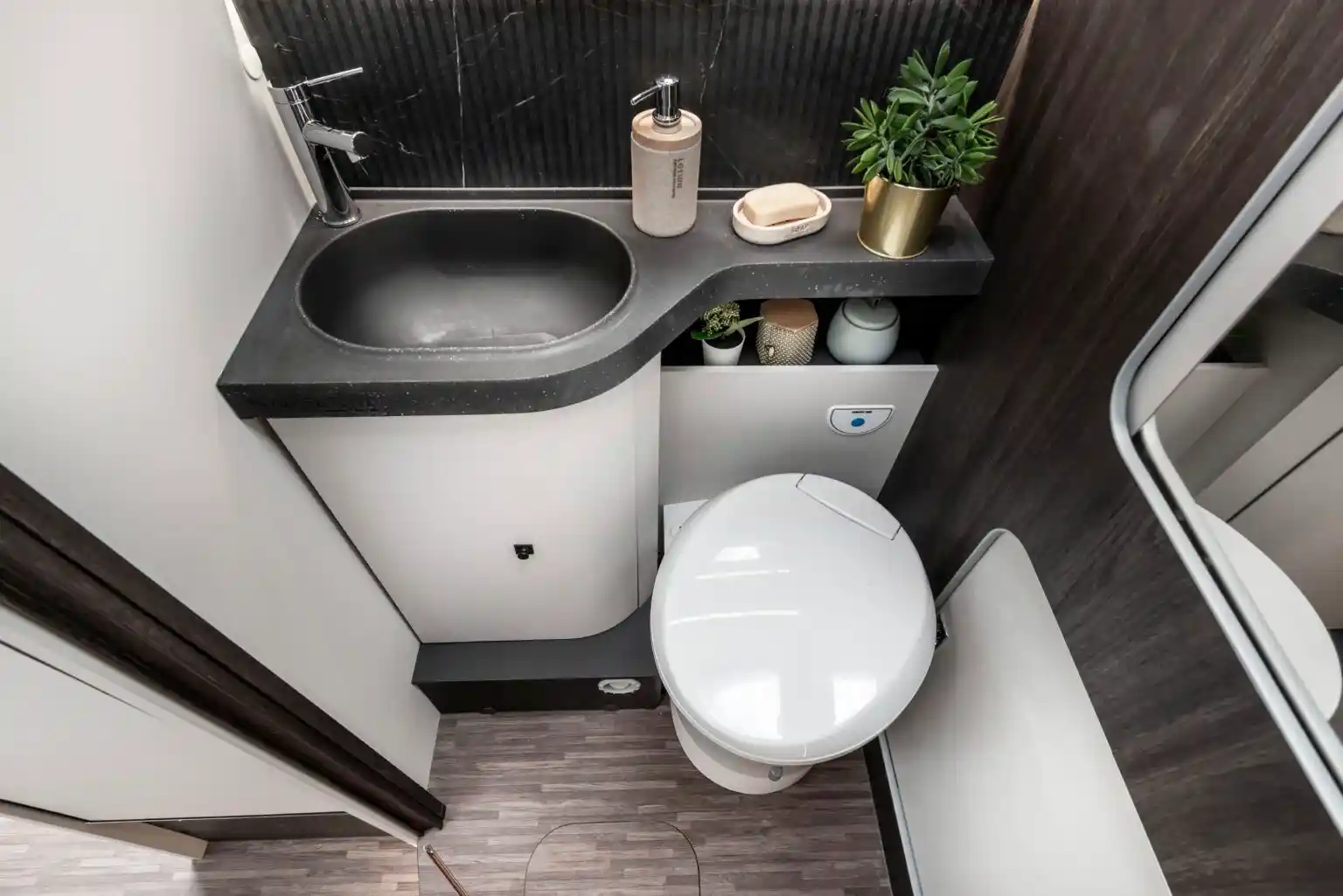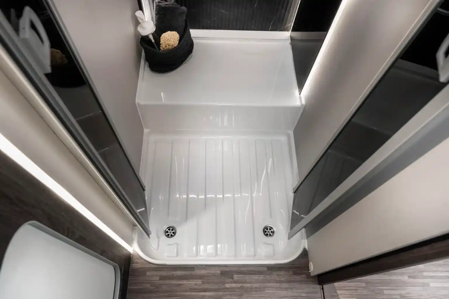 - Maximale Füllmengen: Frischwassertank während der Fahrt / Frischwassertank im geparkten Zustand / Abwassertank (L) :10 / 145 / 135